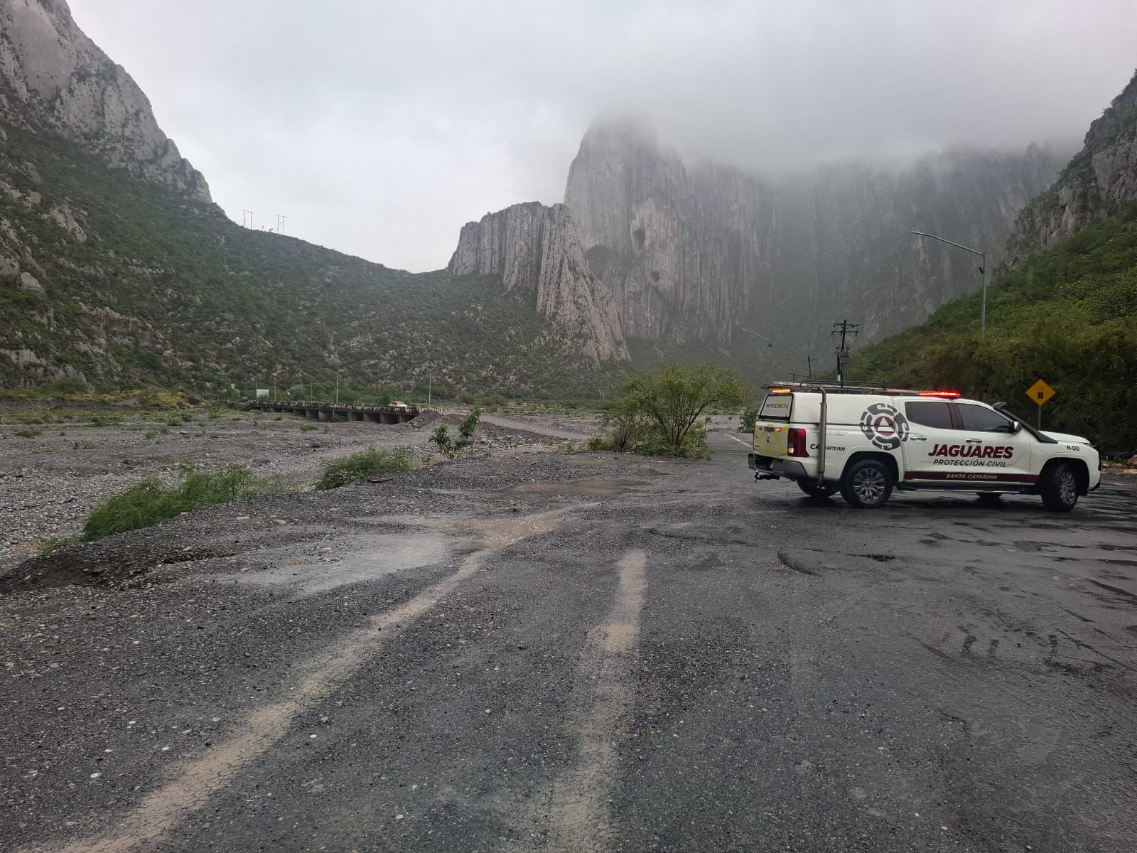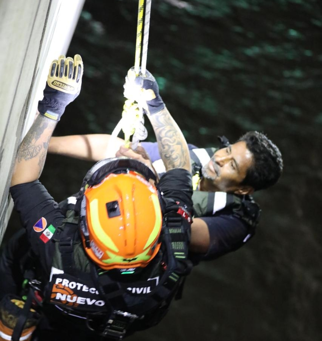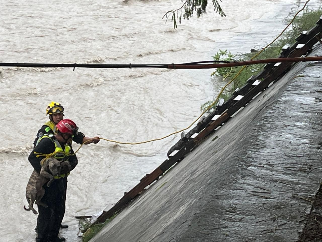 Elementos de Jaguares de Protección Civil de Santa Catarina rescataron a un perro que se encontraba en el lecho del…